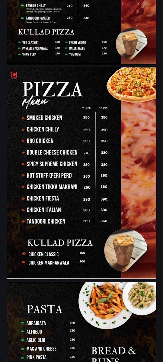 - Pizzas: From the classic Margherita to the bold Spicy Supreme, each pizza is crafted with fresh ingredients and flavorful toppings, appealing to both vegetarians and meat lovers alike.